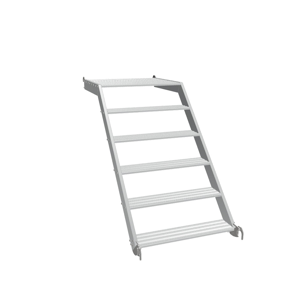 The Alto Cup System Scaffold Stair is an all-aluminium stair unit designed to be used on system scaffolding with 1.8m bays – typically Cuplok/Scaflok/Genlok/Tradlok.